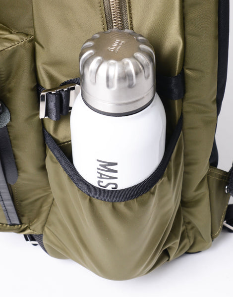 This is a military-style series that features ultra-high-density nylon twill with an elegant shine and metal parts.