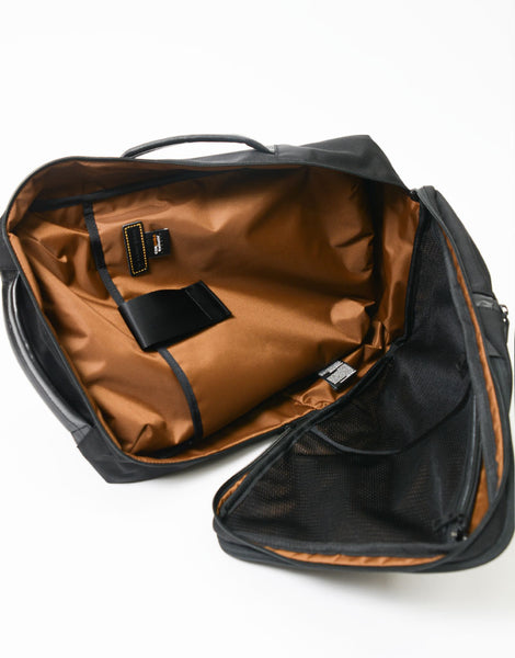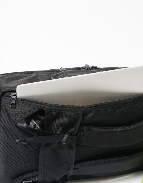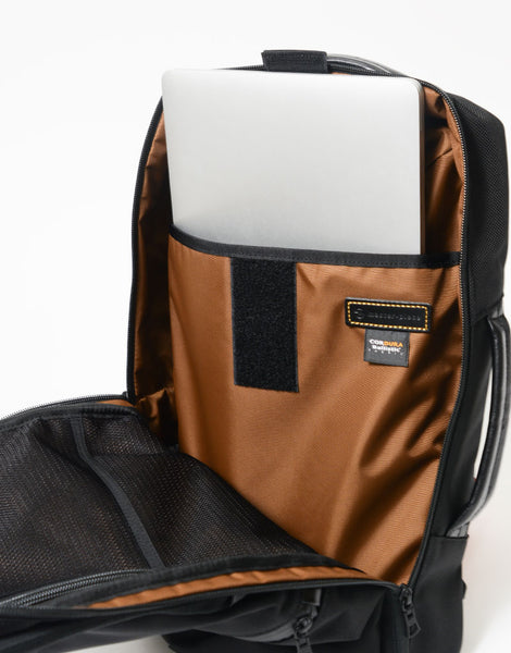 The body material is durable than normal nylon, and uses Cordura Ballistic® Fabric 1680D nylon, which is more durable and resistant to friction and tear. By pulling two twisted yarns of the vertical 840D horizontal 840D, the friction and tear strength are enhanced, the surface is water -repellent, and the back is applied to the back side. The attached material is made of waterproofed leather. The main zipper uses a YKK water -repellent zipper with a water -repellent effect on the tape, and a YKK Aqua Guard Zip with a water stoppage on the front part. Equipped with a convenient pocket for storing laptops and tablets, it is a series that can be used in various situations and various situations that support business and casual scenes.