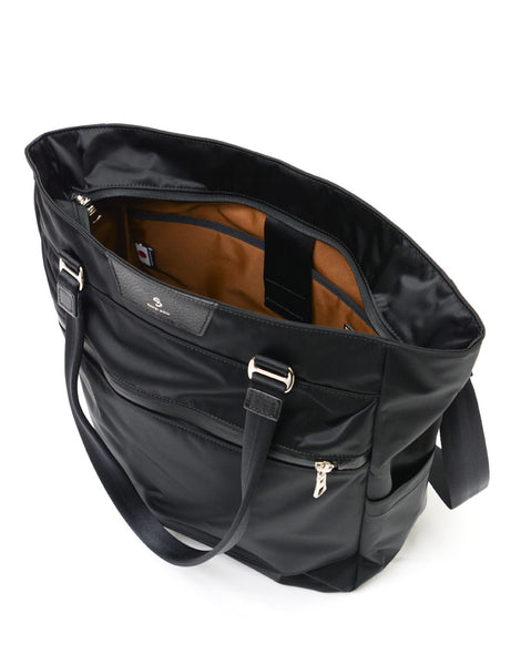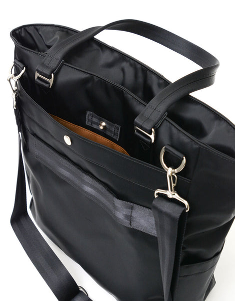 The Progress of master-piece, which is impressive with the elegant expression and cow leather used for combination with glossy nylon twill2WAY Tote Bag. PVC coating is applied to the back of the fabric to achieve waterproofness and firmness.As a business casual, it can be used on and off.
