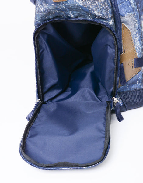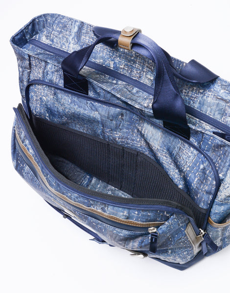 The body material is an Ox with a 600D polyester thread, an ox, aging indigo denim pattern, a technical fabric built with a technical fabric equipped with FDMTL (fundamental) aesthetics such as a traditional Japanese sashimi design and ragged patchwork. Is expressed in a sublimation transfer print.
