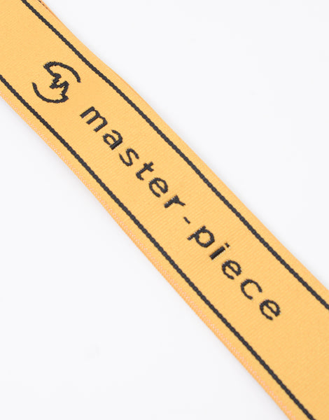 A hard case belt that expresses the master-piece logo with a jacquard weaving. By adopting special rubber on the belt, it can be moderately expanded and contracted, not only can it easily mounted on a hard case, but also fits firmly.