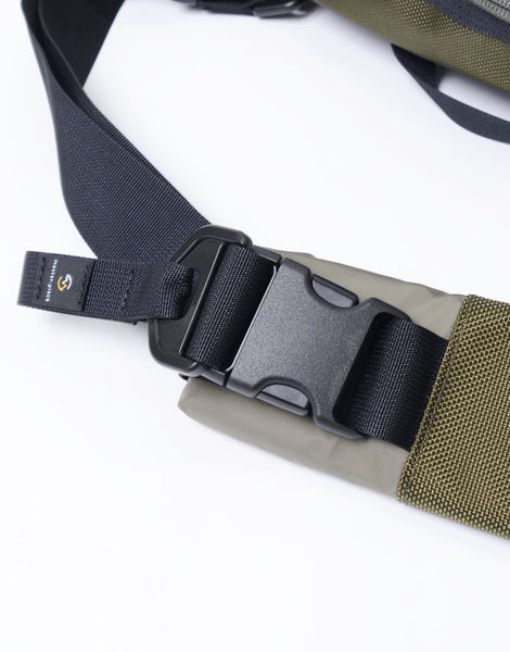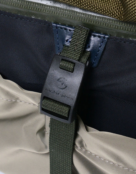 The large pocket buckle that can be adjusted with a cord stopper is made of master-piece original, which can be easily attached and detached using a magnet.