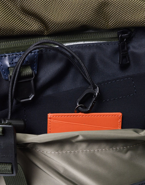 This item features highly robust nylon, nylon twill with just the right amount of gloss, a leather name with retroreflective features, and a front pocket made from different materials.