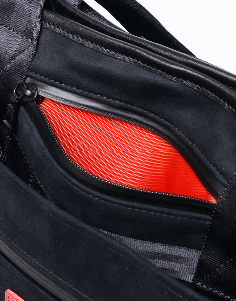 GR 車種のハイクオリティなスエード調シートファブリックをアップサイクル、master-piece のバッグ9 型の本体素材に落とし込んだ TOYOTA GAZOO Racing 初めてのコラボレーションシリーズです。