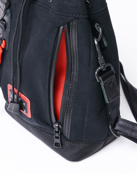 GR 車種のハイクオリティなスエード調シートファブリックをアップサイクル、master-piece のバッグ9 型の本体素材に落とし込んだ TOYOTA GAZOO Racing 初めてのコラボレーションシリーズです。