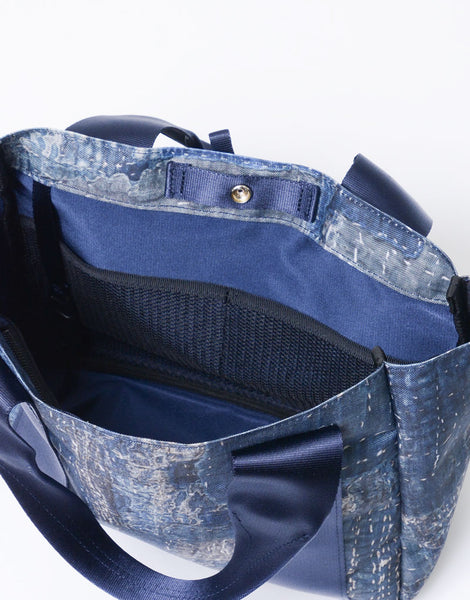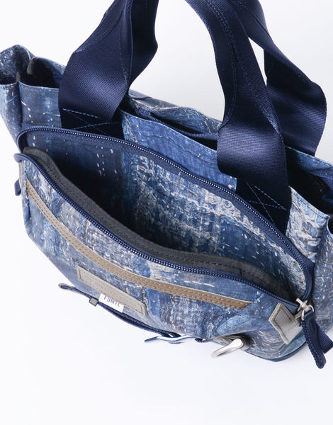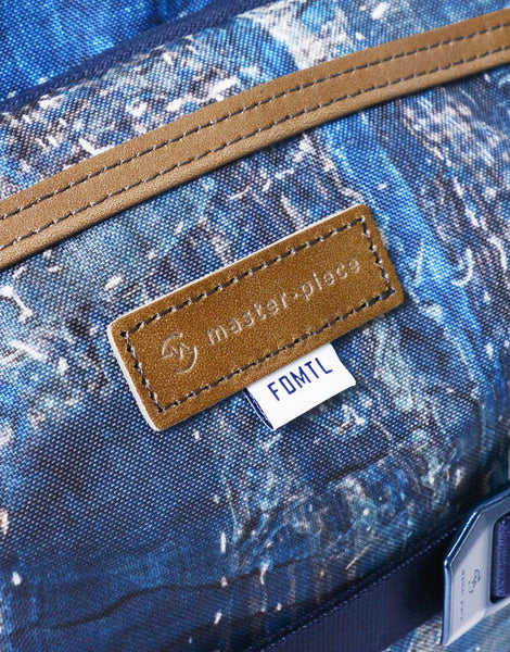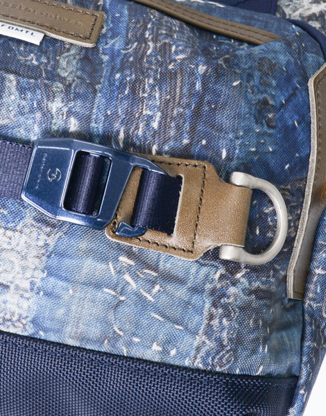 本体素材は600d のポリエステル糸を高密度に織ったオックスに、エイジングインディゴデニム柄、日本の伝統的な刺し子デザインやボロパッチワークといったFDMTL(ファンダメンタル)の美学を備えたテクニカル生地で構築したオリジナルの柄を、昇華転写プリントで表現しています。