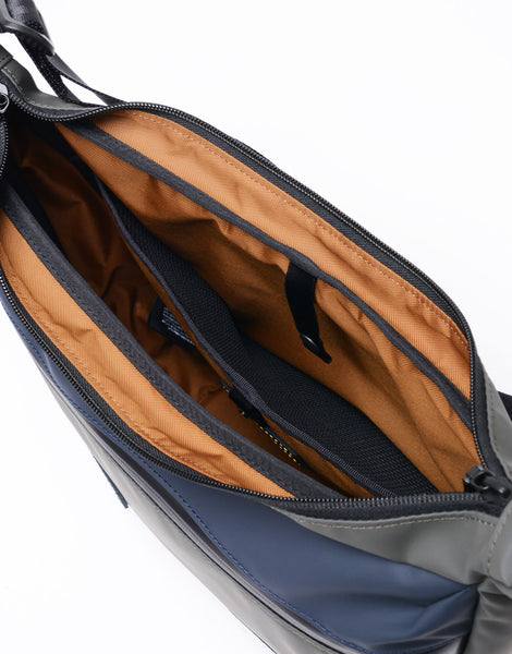 本体生地は高耐久の PU コーティングを施した素材になりますが、強い摩擦や使用状況での劣化等による剥離が生じる場合があります。 濡れたまま長時間放置しますと、色落ちや劣化の原因となることがありますので必ず乾かしてから保管をしてください。 また多湿状況下におかれますと、生地にシワが入る可能性がございますのでご注意ください。 付属レザーは、レザー本来の質感を活かすため染料のみで仕上げを行っておりますので、若干の色ブレがございます。 また、素上げの特性上、変退色は避けることができませんのでご了承ください。