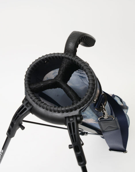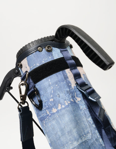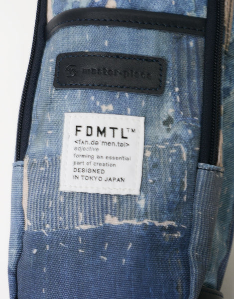 本体素材は600dのポリエステル糸を高密度に織ったオックスに、エイジングインディゴデニム柄、日本の伝統的な刺し子デザインやボロパッチワークといったFDMTL(ファンダメンタル)の美学を備えたテクニカル生地で構築したオリジナルの柄を、昇華転写プリントで表現しています。付属素材はデニムのインディゴをイメージしたダークネイビーに染め上げたカウレザーを使用しています。FDMTLのシグネチャーである美しいパッチワークとmaster-piece GOLFの機能が融合したゴルフギアに特化したコラボレーションシリーズです。