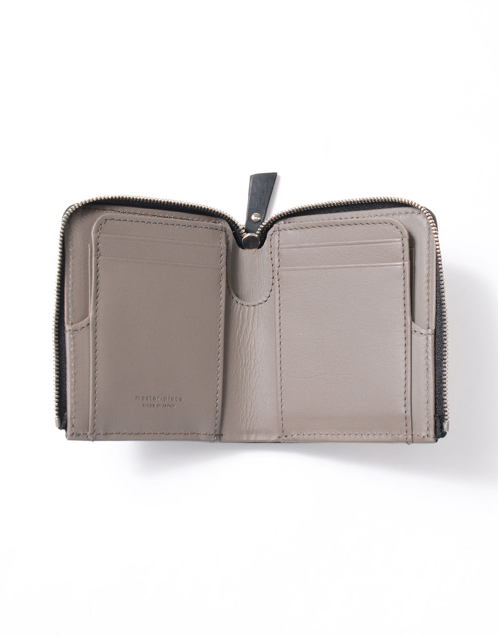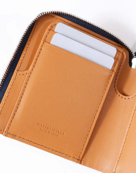 master-pieceの「M」をモチーフにした、多面的で個性的なレザーの切替えが特徴です。