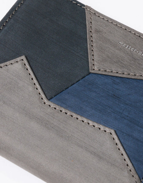 master-pieceの「M」をモチーフにした、多面的で個性的なレザーの切替えが特徴です。