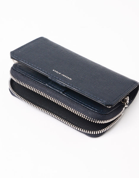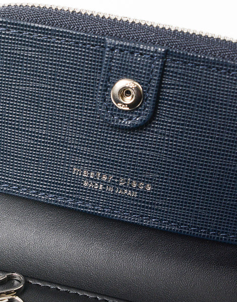 本体素材には、国産原皮をクロム鞣しを施した後に、ベジタブルタンニンの分量を多めに再鞣しを施すことで弾力性やコシを持たせており、エンボス加工を深くハッキリと表現する事が出来ます。 また、仕上げにツヤ材を何層にも塗り込んで加工をする事でより深みを出したレザーになり傷がつきにくくなっております。 付属素材には、繊維のしっかりとした肌目の細かい表情のレザーを使用しています。北米原皮をクロム鞣しをした後にベジタブルタンニンをふんだんに使って再鞣しすることで、レザーが引き締まり弾力性とコシが出ています。 たっぷりとオイルの効いたワックスと、マットな質感を出す仕上げ材を混ぜたものを塗り込むことで、使うほどに艶の出る経年変化を楽しめるレザーです。 表面のエンボス加工の独特な艶感と色の深みを表現した上品なデザインのシリーズです。
