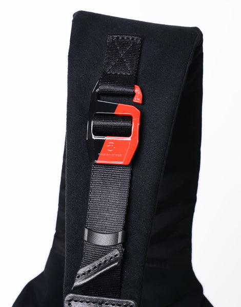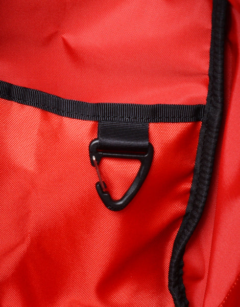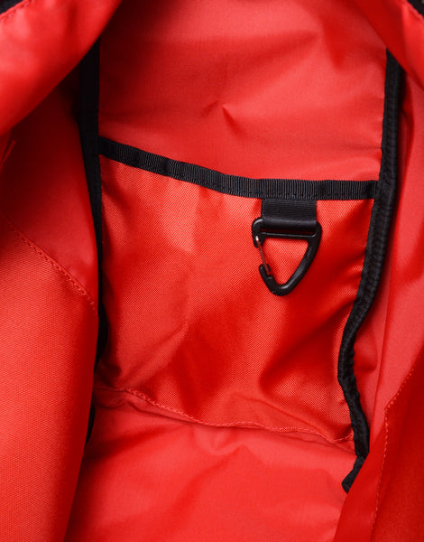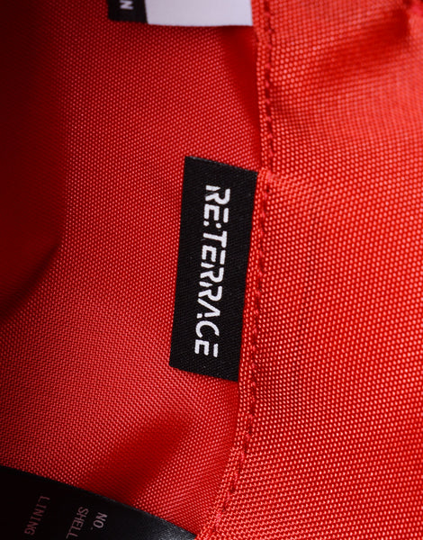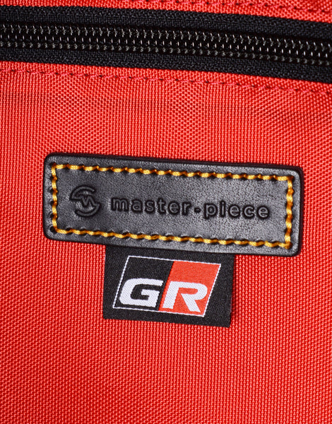 コラボレーションの証であるTOYOTA GR x master-pieceのピスネーム。内装の生地にはGRを象徴するレッドカラーの420d ナイロンを使用し、master-pieceの定番とは全く異なった印象の雰囲気に仕上げました。