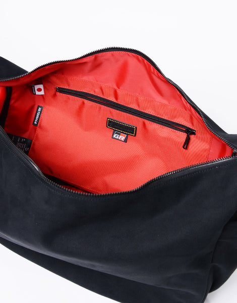 GR 車種のハイクオリティなスエード調シートファブリックをアップサイクル、master-piece のバッグ9 型の本体素材に落とし込んだ TOYOTA GAZOO Racing 初めてのコラボレーションシリーズです。