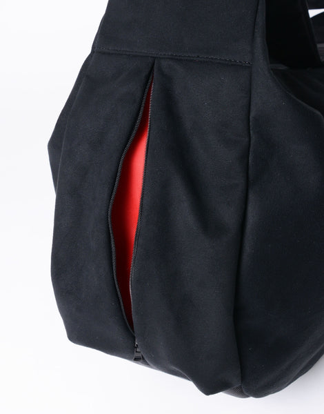 GR YARISやGR COROLLAのシートに採用されるスエード調ファブリックをアップサイクルし、バッグの本体素材に使用。
