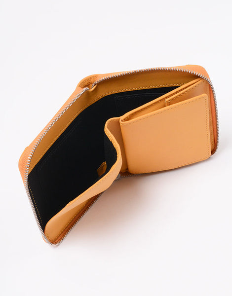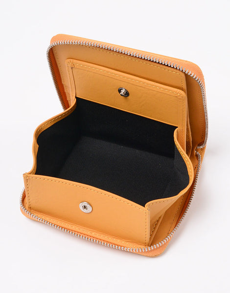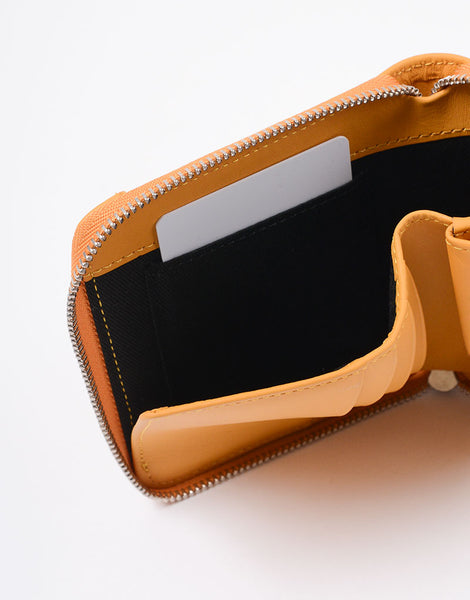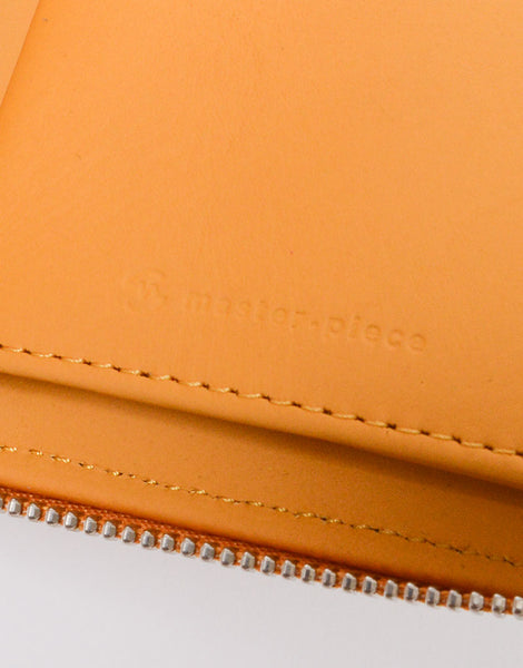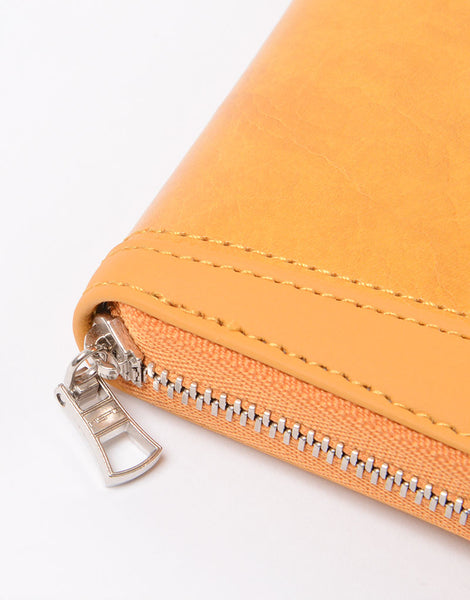 本体素材はキップレザーをベジタブルタンニンで鞣すことで耐久性や弾力性を持たせ、仕上げの加工を変えた 2 種類のレザーを組み合わせています。 ツヤ感が強いレザーは染料のみで仕上げた後に職人がパフを用いてレザー 1 枚 1 枚表面にワックスを浸透させるよう手塗りでアンティーク仕上げをしています。 さらに通常より高い圧力、高温を加えることができるハイドリックアイロンを使用することで、より深いツヤ感を出しています。 マット感が強いレザーは顔料を用いて仕上げた後にツヤ感を抑えるマット材を使用することでラバーライクに仕上げています。 同じ素材を仕上げ方で全く違う表情に仕上げ、組み合わせることでコントラストを出し、直線的なパターンの切り替えが楽しめるデザインとなっています。
