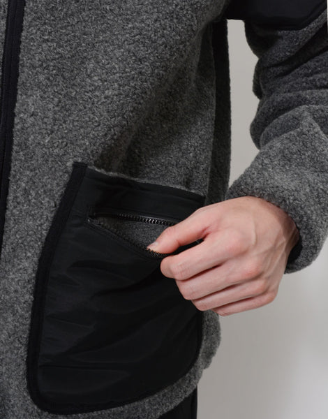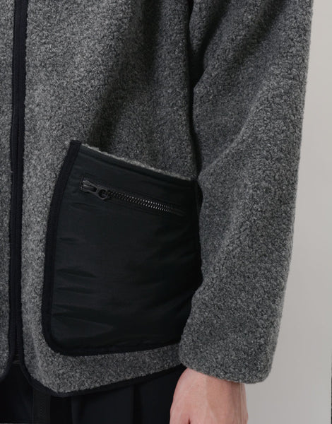 ウールがブレンドされた上品で厚みがしっかりとあるボア素材を採用。 バックパックやショルダーバッグを背負う際に擦れる肩の部分の摩擦に強く、 難燃性のあるグログラン素材を使用しているので、通勤や通学のデイリースタイルでもウールの毛羽立ちを心配する必要はありません。