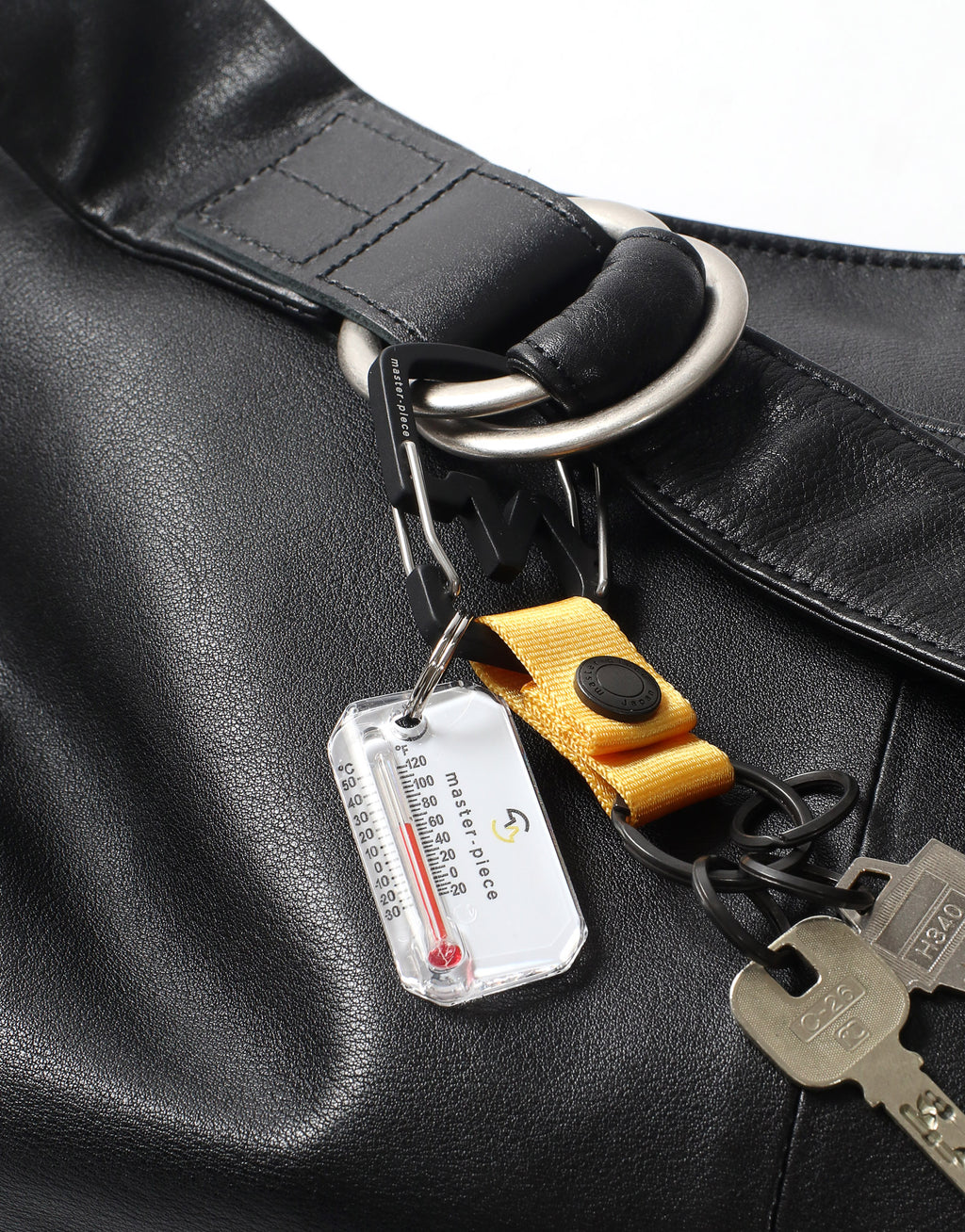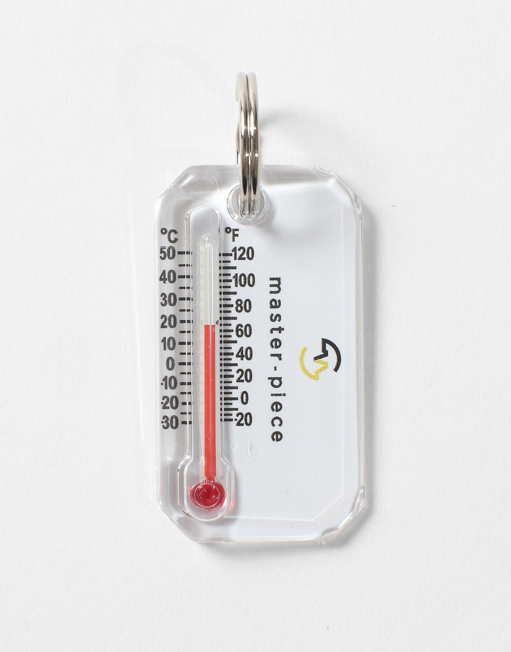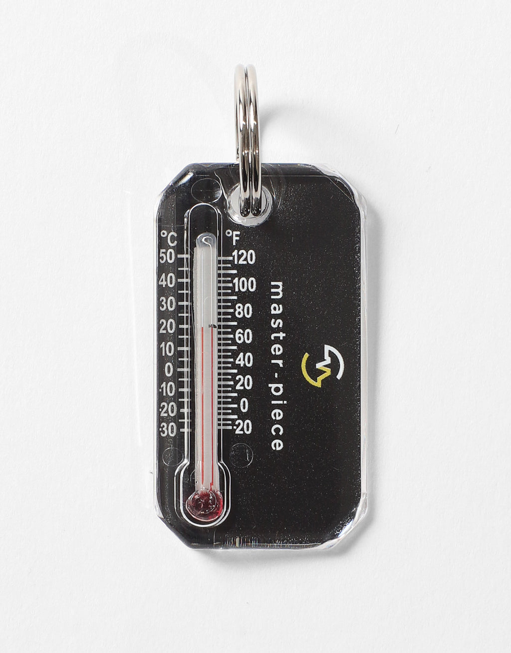ジッパーの止め具やキーホルダーなどに付けておける温度計付きキーホルダーです。