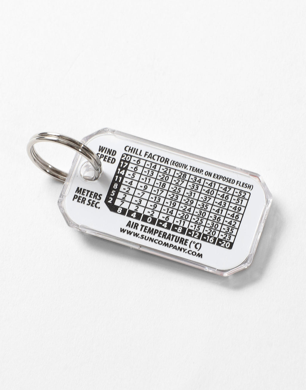 裏面には風速と温度から算出する、ウインドチルの表がついています。