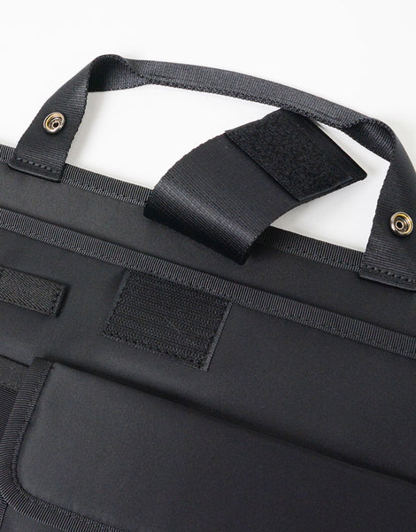 主体使用垂直线1260D X水平螺纹630D强扭曲和高密度尼龙。通过使用强扭曲的纱线,该织物具有强烈的刷牙感,在平坦的同时具有三维表达,并且具有坚固而僵硬且难以皱纹的特征。由于表面应用于Teflon®,因此具有水排泄性和防污染物。 附着的皮革在表面上有一张反射板,并带有高度粘合剂的粘合剂,同时留下皮革质地。 它具有递归反射功能,并考虑了夜间的安全性。主拉链具有金属外观,并使用了大约一半的金属拉链和轻质金属。 在功能方面,它配备了一个方便在公司,工作区和家里使用的工件。 除了将笔记本电脑和平板电脑存储在核心材料和后架上,它还有一个襟翼袋,它使用特殊的织物来阻止无线电波,不仅可以防止略读,而且还存储了手机。您想专注于它。正面底部的拉链口袋的袋子使用了一个轻巧的3层尼龙,具有出色的防水性和防水性,底部使用PVC网格,因此可以方便地存放PET瓶和折叠伞。背包线束配备了一种伸展材料,可方便地存储无线耳机和IC卡。