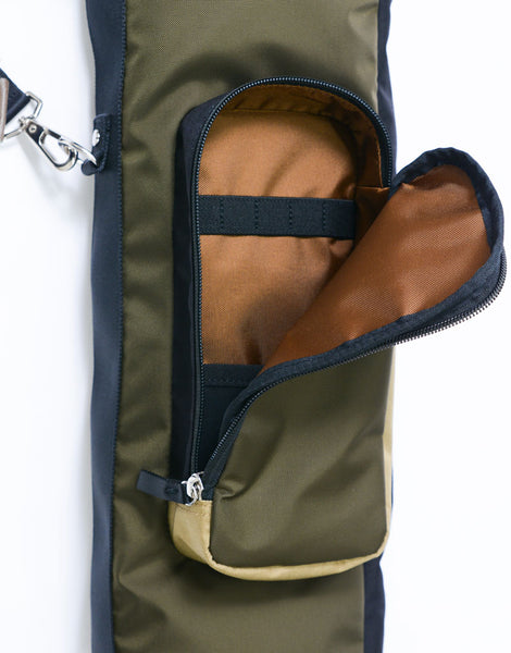 杰作(杰作)的高尔夫球系列俱乐部案。主体材料是Cordura®BrandFaric的生产,以及符合优质标准的认证工厂,两种210d 66尼龙纱被扭曲,两种用作垂直的水平水平和编织。 07。织物的表面是防水的,背部由特殊的透明防水膜L-Vent®层压,并且具有20,000mm的防水功能,具有三层式结构,带有Tricot Niron。零件结合了原始织物Mastertex-04,05,06。附着的材料使用皮革和防水的棕褐色,底部的材料通常是尼龙磨损,撕裂强度和耐用的1680D CorduraBarastec®Nylon的5倍,并通过施加加工,进一步的强度和防水性。改进。