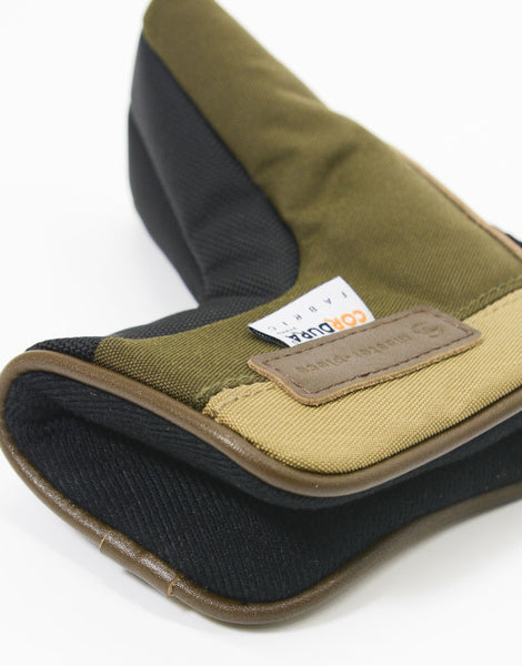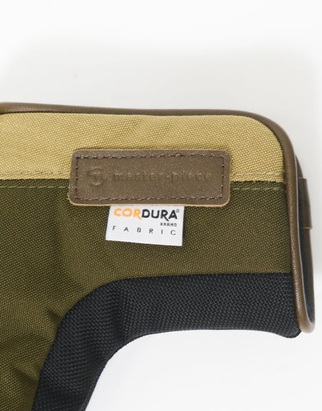 杰作(杰作)杰作高尔夫系列推杆盖(销型)。主体材料是Cordura®BrandFaric的生产,以及符合优质标准的认证工厂,两种210d 66尼龙纱被扭曲,两种用作垂直的水平水平和编织。 07。织物的表面是防水的,背部由特殊的透明防水膜L-Vent®层压,并且具有20,000mm的防水功能,具有三层式结构,带有Tricot Niron。零件结合了原始织物Mastertex-04,05,06。附着的材料使用皮革和防水的棕褐色,底部的材料通常是尼龙磨损,撕裂强度和耐用的1680D CorduraBarastec®Nylon的5倍,并通过施加加工,进一步的强度和防水性。改进。