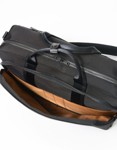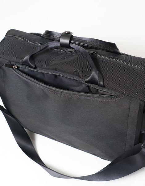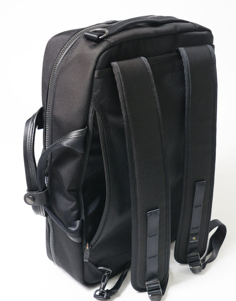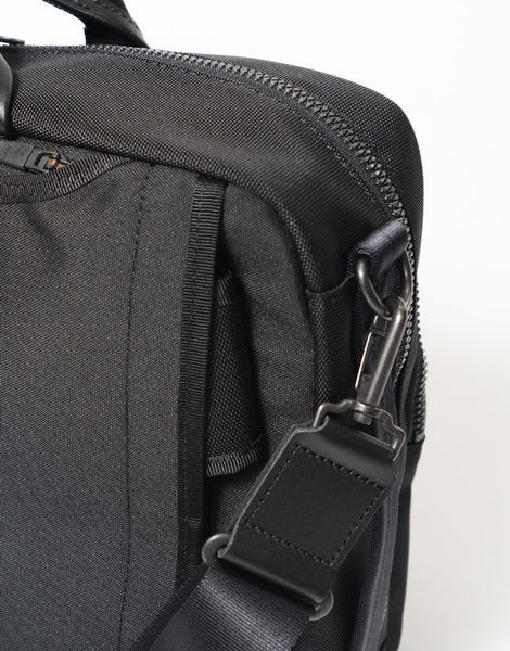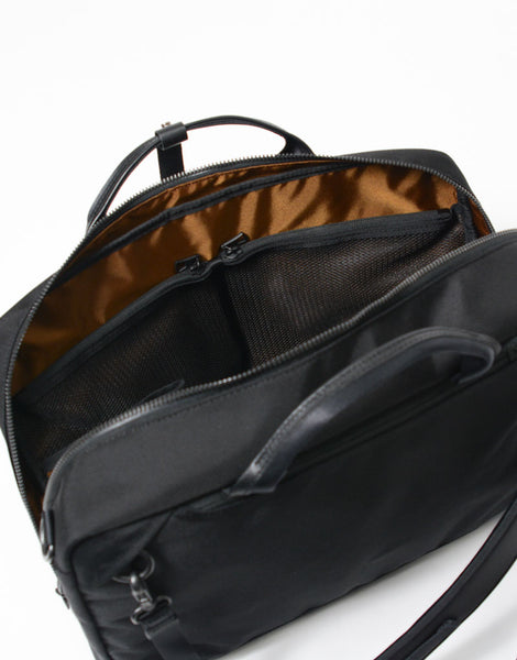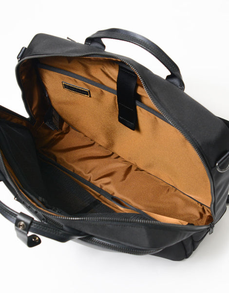 所附面料由 100% 棉帆布制成,表面层压两层高耐用 PU 薄膜,使其高度耐用且防水。为了利用棉帆布的质感,薄膜上印有光泽底纹,赋予其奢华的外观。随附的皮革由国产牛皮制成。通过在鞣制过程中添加3M的防水剂,防水剂渗透到皮革的纤维中,创造出比普通表面拒水性更强、效果持久的拒水功能。这种皮革具有光滑优雅的外观。设计简单,易于与其他服装搭配,虽然具有内部 PC 口袋和用于存放小物品的网状口袋等必要功能,但为了实现轻便性之间的平衡,它被精简到最基本的东西耐用,不错的商务包系列。