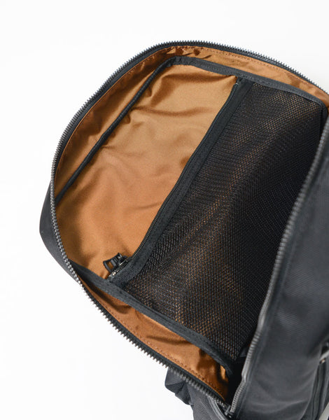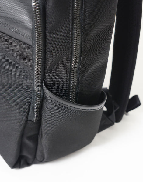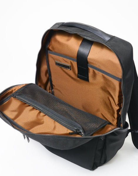 所附面料由 100% 棉帆布制成,表面层压两层高耐用 PU 薄膜,使其高度耐用且防水。为了利用棉帆布的质感,薄膜上印有光泽底纹,赋予其奢华的外观。随附的皮革由国产牛皮制成。通过在鞣制过程中添加3M的防水剂,防水剂渗透到皮革的纤维中,创造出比普通表面拒水性更强、效果持久的拒水功能。这种皮革具有光滑优雅的外观。设计简单,易于与其他服装搭配,虽然具有内部 PC 口袋和用于存放小物品的网状口袋等必要功能,但为了实现轻便性之间的平衡,它被精简到最基本的东西耐用,不错的商务包系列。