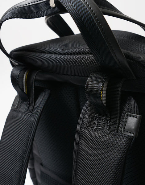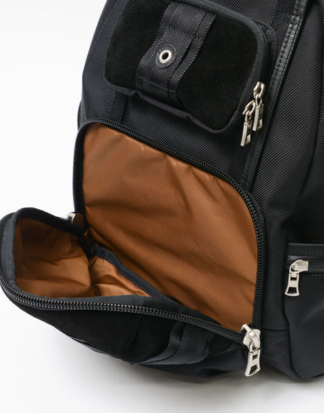 人体材料是使用1260D线的斜纹织物的斜纹织物,该螺纹已被Torayo“Farro®”扭曲为垂直。 Farillo®是一种空心尼龙材料,由于特殊的空心结构,具有独特的光泽和质地。它的材料比同一1260D轻20%,但坚固。饰面适用于水中。底部是Cordura®品牌面料的Hollofil Airtm(66尼龙空心线)的三层织物,这是一种高度耐用且高水耐水的原始织物。附着的绒面革用铬铜色,该铬在北美厚,然后用砂纸小心地抛光,以使刷子细致。由于厚度是固体皮革,因此染色过程分为两次,并且通过在染色过程中添加防水剂来增强防水性。在手柄等上排列的皮革晒黑了100%的单宁,使其成为可享受衰老的坚固皮革。该系列是一个品牌徽标,带有孔眼和带有军事雏菊链的孔眼,结合了高强度和高水位的材料。