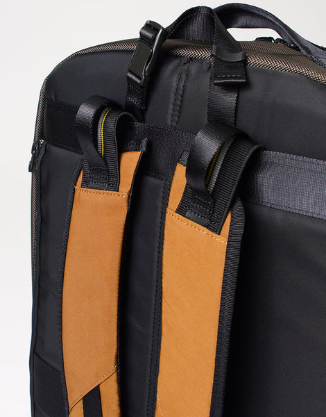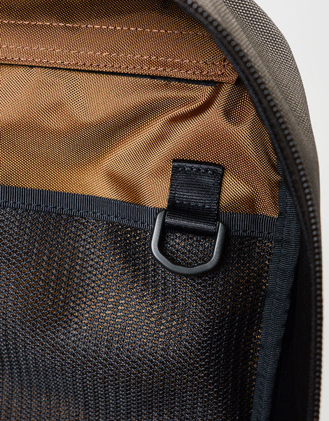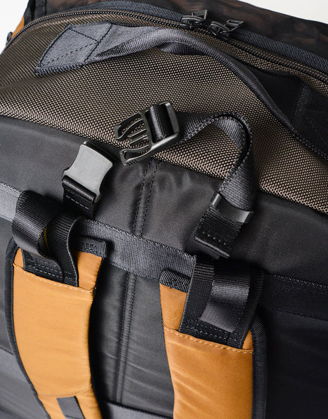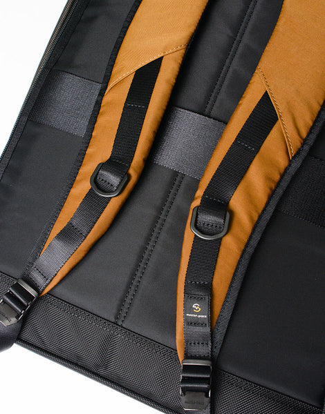 主体材料是垂直线110D,水平螺纹210D,轻巧但全眼尼龙斜纹。它通过染色液体(也称为Jet染色)来表达自然的皱纹和平静的光泽,这是一种染色的染料的方法。染色后,织物的表面是弱的水。此外,使用手动手动执行的称为篮子染色的方法将类似于主体材料的织物用作附着的材料。篮子染色是一种独特的染色方法,其中将折叠的织物夹在网状板之间,并用不均匀的染色和皱纹将其随机染色,每个织物都具有不同的表达。 主存储的材料是1680D CorduraBallistic®尼龙,其约为尼龙的5倍,耐用性约5倍,而后部的PU处理则是改进的材料。 No.02850 / No.02851肩带安全带配备了一种原始机制,称为“ M-STRAP”(注册为实际建议),以减轻行李的重量。