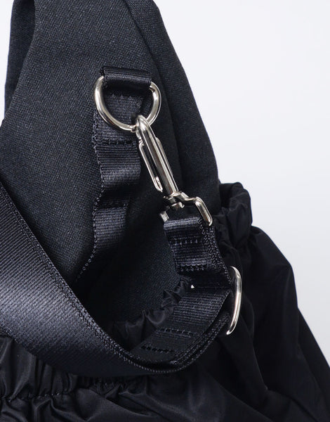 附着的材料是使用尼龙纱的高密度尼龙斜纹斜纹质子,该尼龙纱可再现在旋转工厂生产螺纹时产生的尼龙废料,70D用于垂直纱线和200D用于水平螺纹。该尼龙线不仅是在GRS认证环境中柔和的材料,而且还具有轻巧耐用的地方。