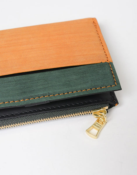 主体材料采用国内极为稀有的优质荷斯坦牛,并采用植物单宁鞣制,使其具有耐用性和弹性。此外,在染色过程中,会比平时涂上更多的油两次,以使其随着时间的推移而渗透,从而产生光滑湿润的质感。仅用染料完成饰面,然后使用假名刷手工刷涂每件作品,以创造出皮革特有的木纹外观。因此,每天仅生产约 10 件,使得这种皮革极为稀有。您还可以享受随着时间的推移而发生的变化。附带的皮革采用欧洲原皮,经过铬鞣,经过玻璃抛光,然后用特殊的聚氨酯进行表面处理,赋予其哑光质感和橡胶触感。它还具有耐摩擦和耐褪色的表面处理。