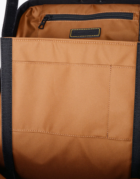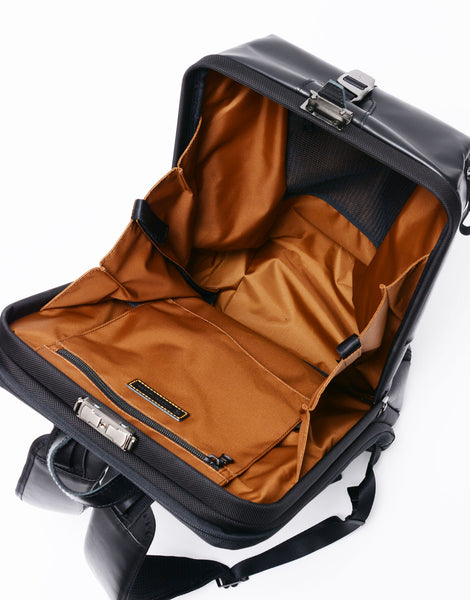 収納部はラップトップやタブレットなどの収納、過不足なく設けたポケットを装備しています。またメイン収納部の中仕切りは、荷物の大きさに合わせて脱着が可能です。