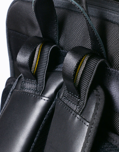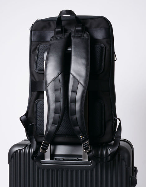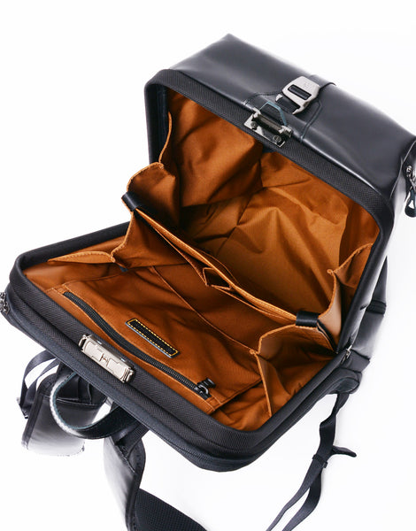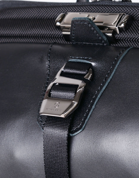 シンプルなビジュアルの中に様々なギミックを併せ持つ、収納に優れたカジュアルなダレスバッグである”Bump"シリーズの本体素材を防水レザーにアップデートしたモデル。