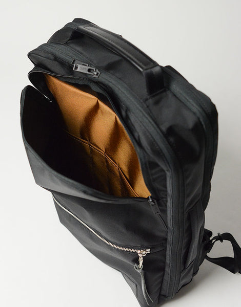 主体面料采用 Yorofu® 制成,这是一种采用东丽尖端技术制成的超强尼龙面料。与传统的66尼龙不同,该面料采用世界最高水平的高强度尼龙线,采用高粘度聚合物技术和纺丝技术。此外,我们使用的材料比传统的66尼龙更坚固、更耐用,并且是纯国产技术的结合。这款 Armor Cloth® 420D 尼龙的表面经过耐用的超防水处理,背面涂有三层不同的涂层,使其轻便且防水。附带的面料是英威达的1680D Cordura Ballistic®尼龙,其磨损强度和耐用性是普通尼龙的约5倍,背面经过PVC处理,进一步提高强度和防水性。此外,随附的皮革是经过日本皮革技术协会13项标准有害物质测试(JES)的生态牛皮革,并采用植物单宁鞣制,不使用任何有害物质六价铬对人体.做.前袋拉链采用YKK EXCELLA,每个元件都经过精心抛光,其他部件则尽可能少用金属制成,以减轻重量。三角形的名字具有反光功能,是为了夜间安全而设计的。有空间存放笔记本电脑、平板电脑等。该系列设计和色彩简洁,适合各种场合,无论是在开着还是关着。
