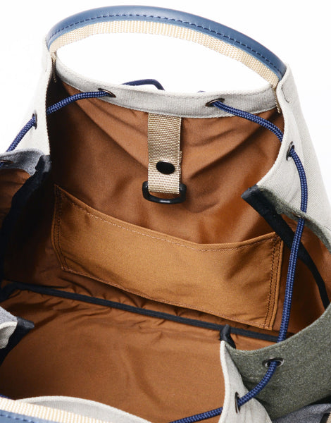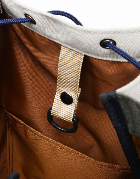 メイン素材に環境に配慮したGRS認証のリサイクルポリエステルを採用した、 巾着型としてもトート型としても使える2WAY仕様のバッグ。