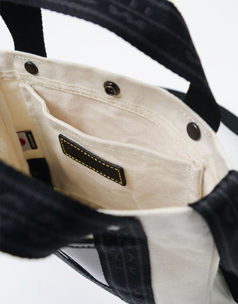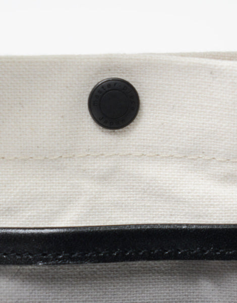 主体材料使用旧班车织机的超高密度8号画布。通常,33个位置,其中25个水平线被驱动,因此,班车的独特厚度是独特的。它在材料。此外,石蜡的牢固性(这是该材料的另一个特征)通过染色螺纹并用特殊油浸入油石蜡加工材料中。熟练的工匠在库里希基市的库吉玛(Kojima)进行所有扭曲,染色,编织和饰面,每天只能只生产50m。附着材料的清晰膜使用在冈本有限公司的Shizuoka Plant上制造的家用产品颜色膜。附着的皮革有13种日本皮革技术协会,该协会已经过测试(JES),不使用任何有害物质的铬,并使用绿植物晒黑的Eco -Cowerer。这是一个随意的味道系列,可以与中性尺寸和原始徽标胶带一起使用。