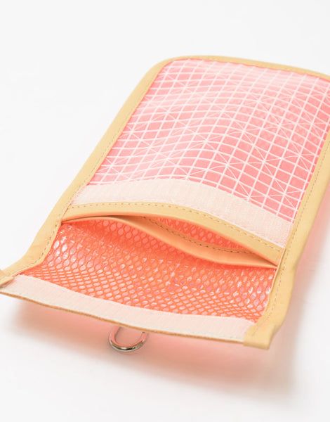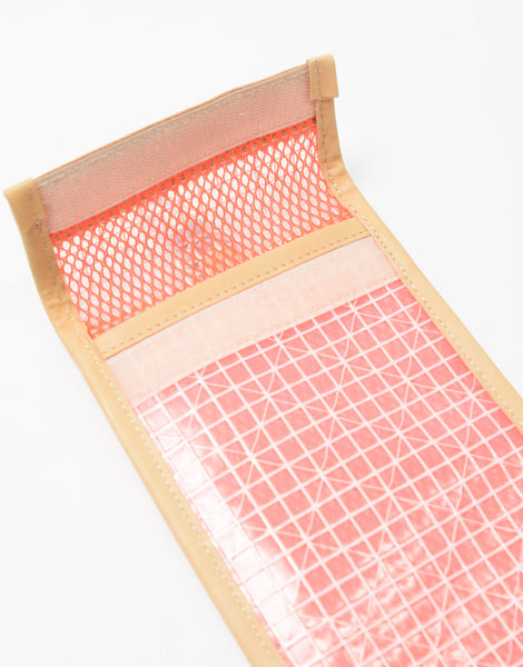 主体材料为透明PVC薄膜,与工厂帐篷使用的材料相同。普通透明PVC膜如果长时间暴露在紫外线下会很快变黄变硬,但这种面料采用耐候配方,所以即使在户外使用时暴露在紫外线下也不会变黄或变硬.经过处理可防止变形和硬化。另外,表面涂有氟树脂,不仅不易弄脏,而且与普通带线的透明薄膜不同,底布采用厚实、耐用、高强度的涤纶线,使其坚固性极佳。内饰采用尼龙网状材质,色彩与不同材质的结合营造出流行氛围。随附的皮革为生态牛皮革(NISSENKEN),由无害的植物单宁和植物油制成,重量轻,不含造成环境污染的化学物质和染料以及其他对人体有害的物质。通过 Oeko-Tex Standard 100 认证)。主体附有茄子环,因此您可以根据您的搭配和目的单独使用,也可以将其连接到其他包或肩带(单独出售),或者两个或多个一起使用,营造出不同的氛围。放在这里。