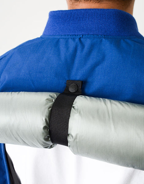 与 Packers 合作推出 NAANGA 羽绒外套。 MA-1的排列我们使用了与Nanga的Bonfire Down相同的面料,但这种面料是芳纶混纺,具有很强的耐磨性,因此耐与包包摩擦。配备可卷起背部的细节,缓解背着背包时背部过热的压力。下摆的外层织物上有橡胶褶皱,可防止因与包袋摩擦而造成损坏。