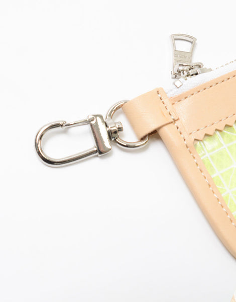 主体材料为透明PVC薄膜,与工厂帐篷使用的材料相同。普通透明PVC膜如果长时间暴露在紫外线下会很快变黄变硬,但这种面料采用耐候配方,所以即使在户外使用时暴露在紫外线下也不会变黄或变硬.经过处理可防止变形和硬化。另外,表面涂有氟树脂,不仅不易弄脏,而且与普通带线的透明薄膜不同,底布采用厚实、耐用、高强度的涤纶线,使其坚固性极佳。内饰采用尼龙网状材质,色彩与不同材质的结合营造出流行氛围。随附的皮革为生态牛皮革(NISSENKEN),由无害的植物单宁和植物油制成,重量轻,不含造成环境污染的化学物质和染料以及其他对人体有害的物质。通过 Oeko-Tex Standard 100 认证)。主体附有茄子环,因此您可以根据您的搭配和目的单独使用,也可以将其连接到其他包或肩带(单独出售),或者两个或多个一起使用,营造出不同的氛围。放在这里。