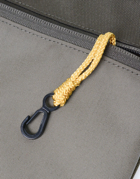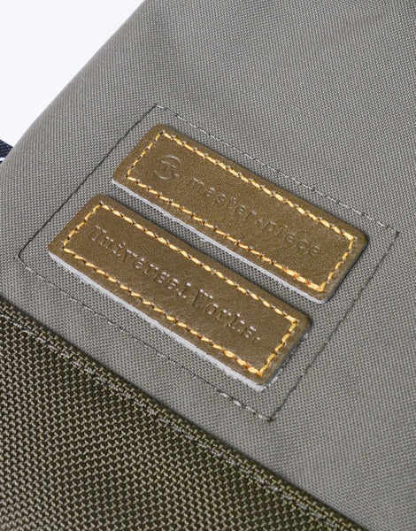 橄榄和海军的材料是垂直纱线,915DCordura®聚酯纱线,以及使用1200DCordura®再生聚酯纱线的牛织物的水平螺纹,以增强水的驱动性和反透明度。