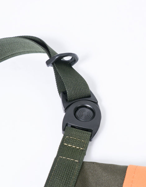 橄榄和海军的主要材料由牛津织物制成,由915DCordura®聚酯纱制成,用于经纱和1200DCordura®回收的聚酯纱,用于纬纱,并经过TEFLON治疗以增加水的渗透率和耐污渍。