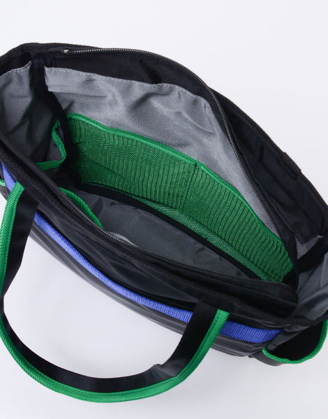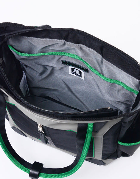 特征性的车辆前面大胆地掺入了袋子的前躯干中,其设计旨在将不同的材料(如件)组合在一起。无论背包和手提袋都是打开还是关闭,它们都以轮廓和大小与各种人相对应。